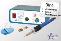 Klicken Sie auf ein Produkt, um weitere Informationen zu erhalten Lötstation ST 081 10 Watt Diese wohl kleinste Lötstation der Welt wird sich schnell durch ihre Vielseitigkeit zu einem Spitzenprodukt als sinnvolle Ergänzung des Löt- und Modellbau-Programms etablieren. Artikel-Nr.: 08108 Wax-Modellier-Station