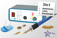 MULTI-UNIT ST 201 Diese multifunktionelle Einheit vereinigt eine Brandmal-, eine Löt- und eine Modellier-Station in einem Gerät. Der handliche Kolben bietet dem Brandmaler die Möglichkeit... Artikel-Nr.: 20100 MULTI-UNIT ST 201 Diese multifunktionelle Einheit vereinigt eine Brandmal-, eine Löt- und eine Modellier-Station in einem Gerät. Dieses Set enthält eine zusätzliche Auswahl an verschiedenen Spitzen. Artikel-Nr.: 20101 Brandmal-Kolben ST 30 WB Absolut handlicher Kolben für höchsten Komfort und Kreativität. Durch die mitgelieferten Formen der Spitzen können verschiedene Strichstärken realisiert werden. Artikel-Nr.: 20301 Wax-Modellier-Station