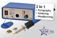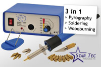 This Multifunction Station combines a pyrography, a soldering and a modelling station in a single piece of equipment. This set includes an additional selection of various tips.